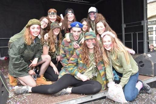 In mijn school konden we als klas zelf een thema kiezen. Zoals je kan zien op de foto, kozen we voor het thema leger. Samen met de klas hadden we ook een trui ontworpen die we de hele dag door droegen. Het is een leuk aandenken aan mijn 100-dagen in de Heilige Familie in Ieper.